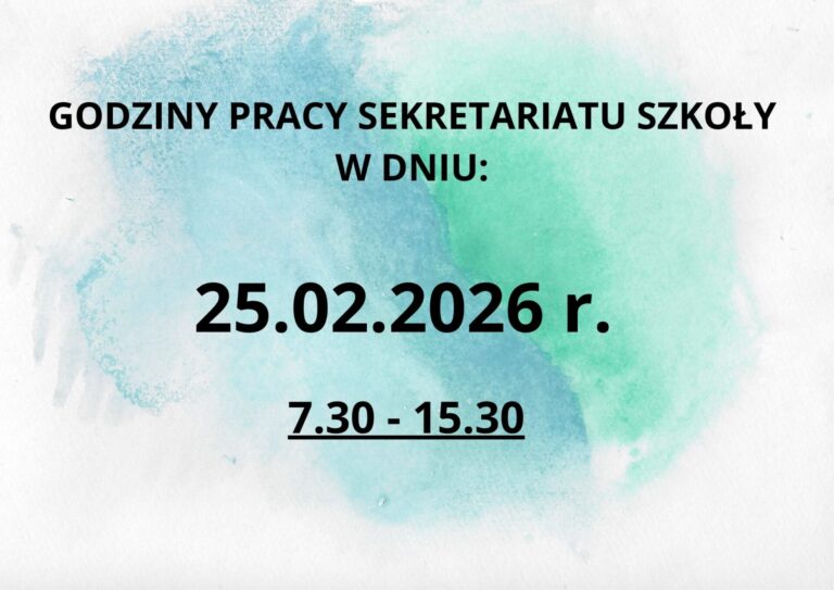Godziny pracy sekretariatu szkoły w dniu 25.02.2026r. !