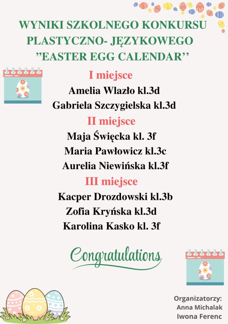 Wyniki Szkolnego Konkursu Języka Angielskiego Easter Egg Calendar