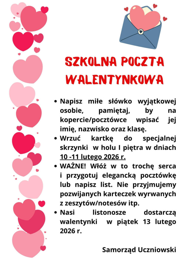 lecimy z hitami 🎉 Zapraszamy na Dyskotekę z DJ-em! Będzie imprezowo! 🎧💃🕺 Hej Uczniowie! Zarezerwujcie czas na Dyskotekę Walentynkową — będzie tanecznie i klimatycznie! 💃🕺Samorząd Uczniowski jest głównym organizatorem wydarzenia, a dzięki wsparciu Rady Rodziców na miejscu pojawi się DJ, więc będzie konkretna muzyka, mocna energia i tańce bez końca 🎧😎🎶. To idealna okazja, żeby […]